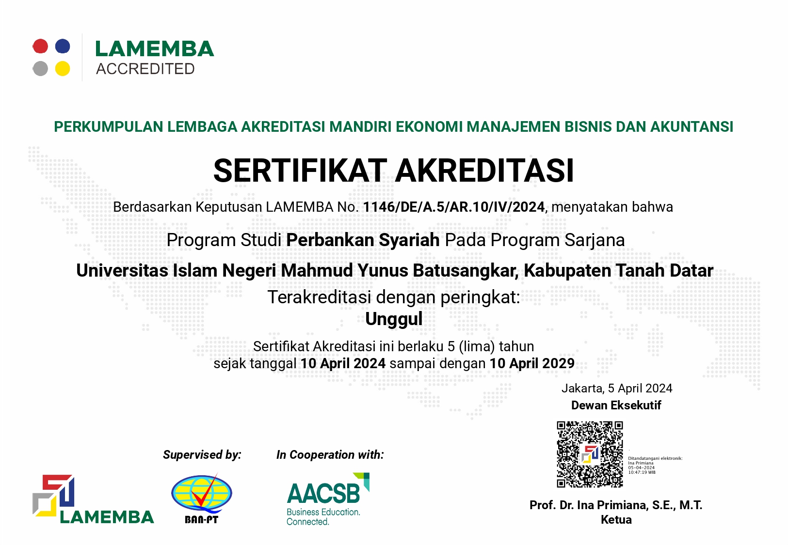 Batusangkar, 21 September 2023 Prodi Perbankan Syariah FEBI UIN Mahmud Yunus Batusangkar berhasil mempertahankan akreditasi Ungul dari Lembaga Akreditasi Mandiri Ekonomi Manajemen Bisnis dan Akuntansi (LAMEMBA), yang sebelumnya juga sudah terakreditasi Unggul oleh BAN-PT. Dekan FEBI Dr. H. Rizal, M.Ag., CRP, mengatakan perolehan akreditasi Prodi Perbankan Syariah oleh LAMEMBA ini merupakan sebuah prestasi yang membanggakan....Read More
