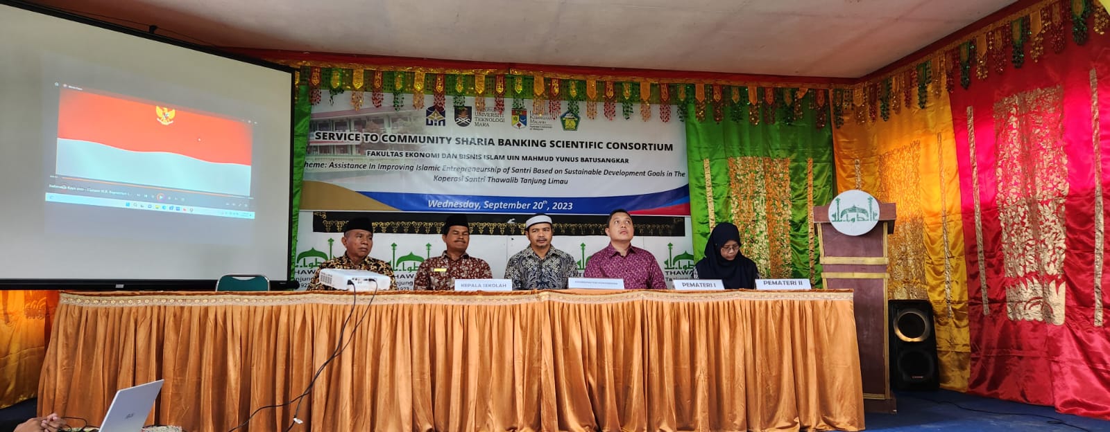 Batusangkar/20 September 2023. Konsorsium Perbankan Syariah dan Manajemen Zakat Wakaf Fakultas Ekonomi dan Bisnis Islam UIN Mahmud Yunus Batusangkar mengadakan Pengabdian Kepada Masyarakat (PKM) di Pondok Pesantren Thawalib Tanjung Limau berkolaborasi dengan University Kebangsaan Malaysia (UKM) dan Universiti Teknomogi Mara (UITM). Kolaborasi Internasional dalam bentuk Pengabdian Kepada Masyarakat ini bertemakan “Assistance In Immproving Islamic Entrepreneurship...Read More